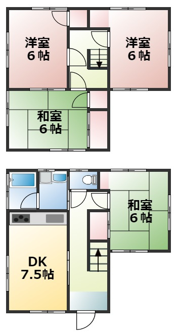 DK 7.5帖 / 洋室 6.0帖 2室 / 和室 6.0帖 2室 / |