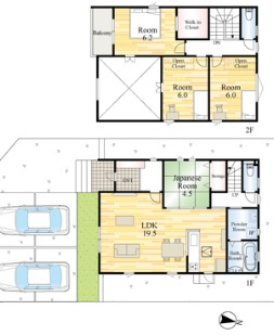 LDK 19.5帖 / 和室 4.5帖 1室 / 洋室 6.2帖 1室 / 洋室 6.0帖 2室 / |