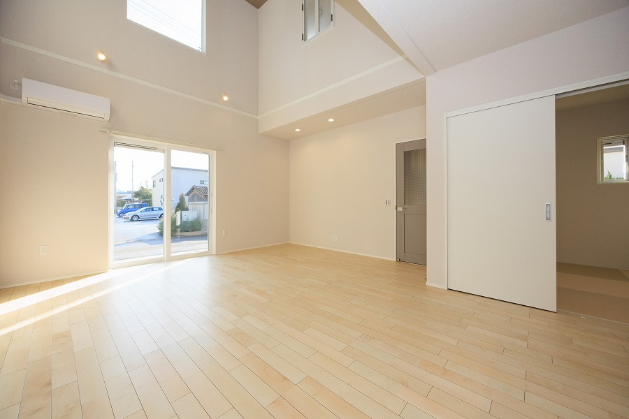 人気の神野地区の新築戸建てです!南側道路で陽当たりもいいオール電化住宅です♪1階はシャッター付で天井高も2.55mと開放感あるお部屋になっております♪