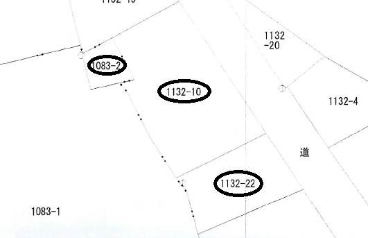 | 備考 | ●現況渡し●下水枡未(1基18万の負担金必要)●接道部占用許可要●古い上水道引込あり(引込、メータ不明)●農地転用一部あり(19.05坪)●地番1132-10・1132-22・1083-2 | ||