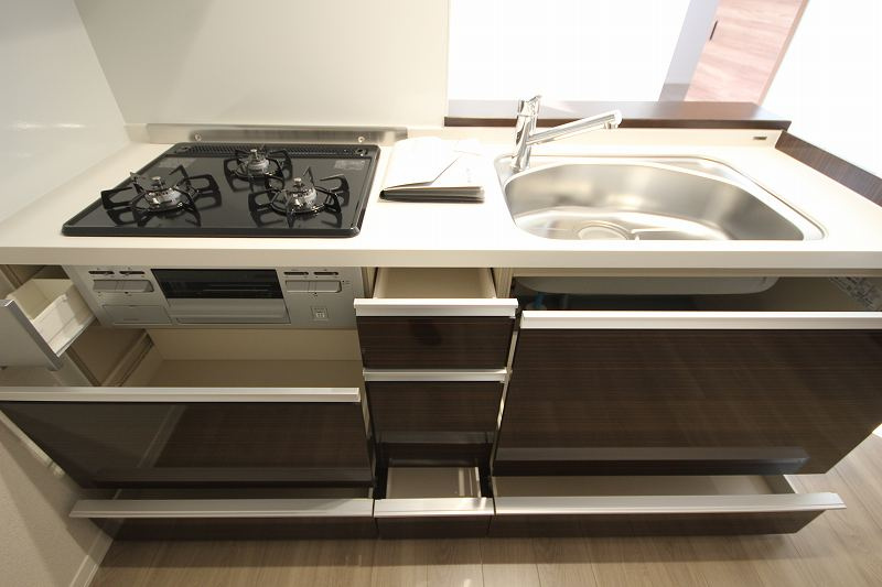 | 設備条件 | 公共下水 / 公営水道 / プロパンガス / 宅配ボックス / 陽当り良好 / 保証人不要 / 2人入居可 / 高齢者相談 / 学生相談 / 室内洗濯機置場 / フローリング / バルコニー / 照明器具付き / 駐輪場 / ガスコンロ / コンロ2口以上 / システムキッチン / 対面式キッチン / コンロ3口 / カウンターキッチン / バス・トイレ別 / 追焚機能浴室 / 浴室乾燥機 / 温水洗浄便座 / 洗髪洗面化粧台 / シャワー / 独立洗面台 / エアコン / シューズボックス / インターネット対応 / ネット使用料無料 / TVモニタ付インターホン | ||