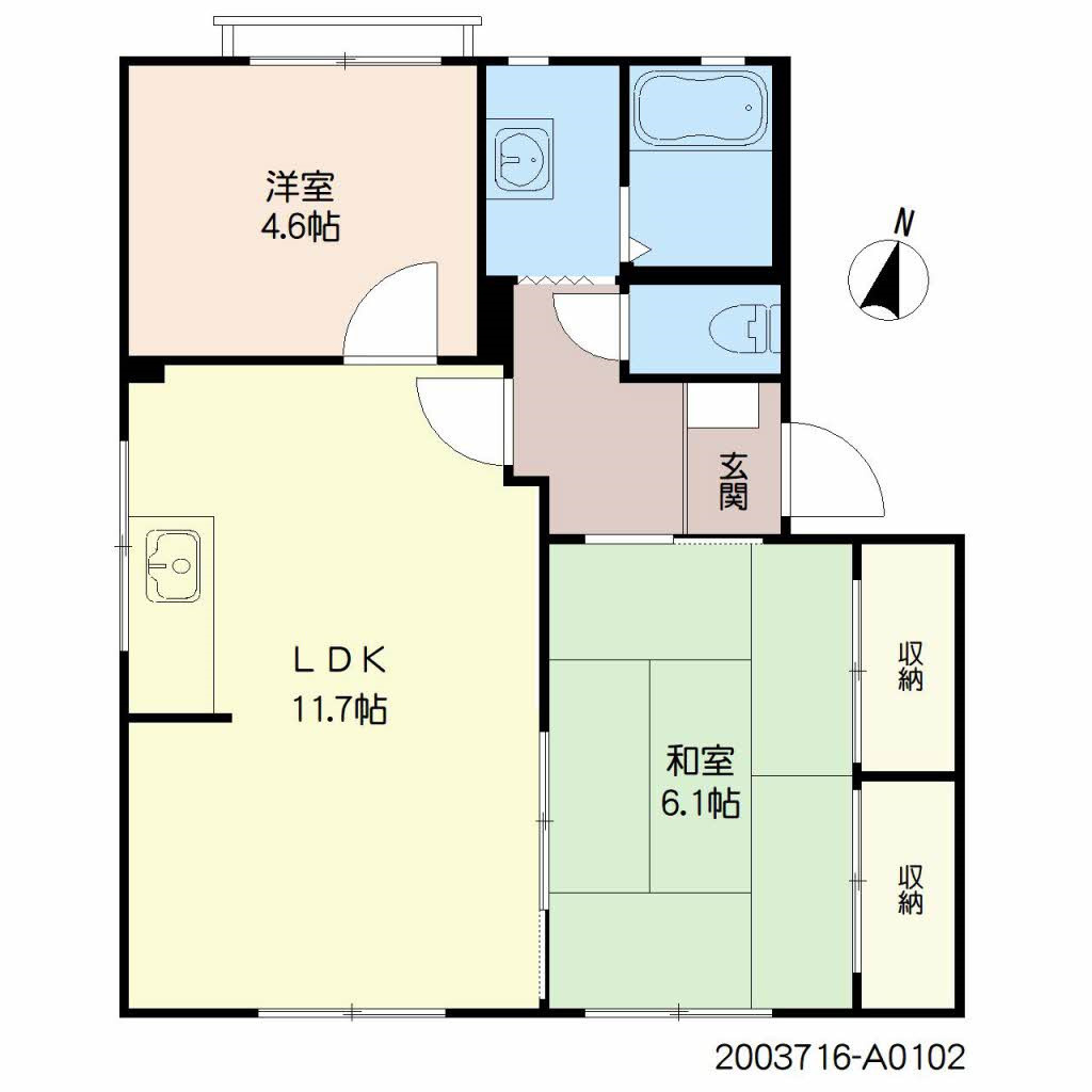 LDK 11.7帖 / 洋室 4.6帖 / 和室 6.1帖 / |